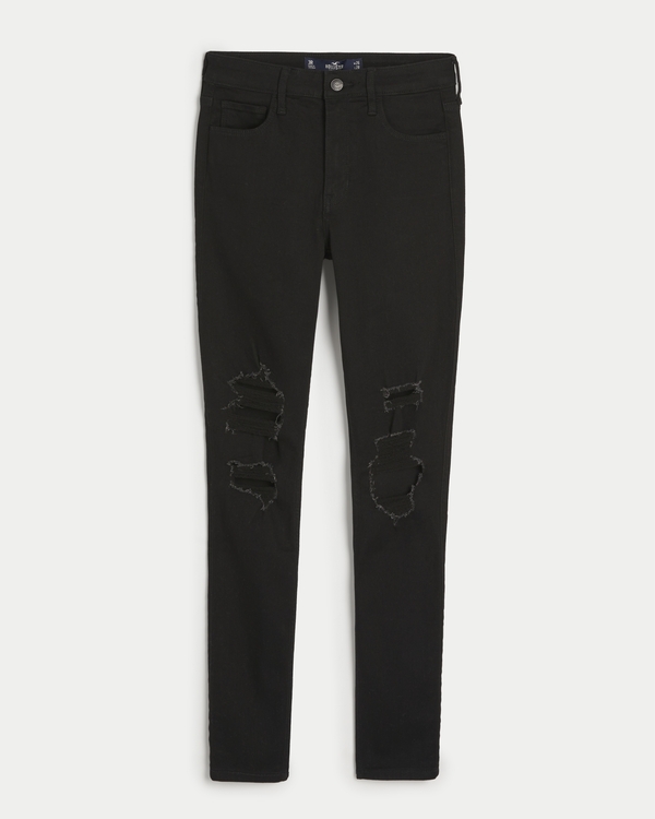 Asos Design High Rise Ridley Skinny Jeans In Black With Shredded Rips Asos