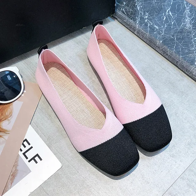 female Flache Schuhe Square Head Schuhe Atmungs Stricken Spitze Schuhe Mischfarbe Frauen Weiche Schuhe Frauen Zapato De Women S Flats Aliexpress