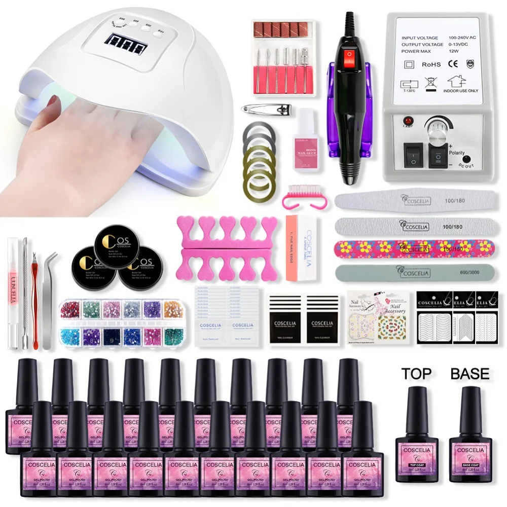 Manicure Set Nail Kit Uv Lamp 30 Colors Gel Polish Art Tools Top Base Coat Ebay