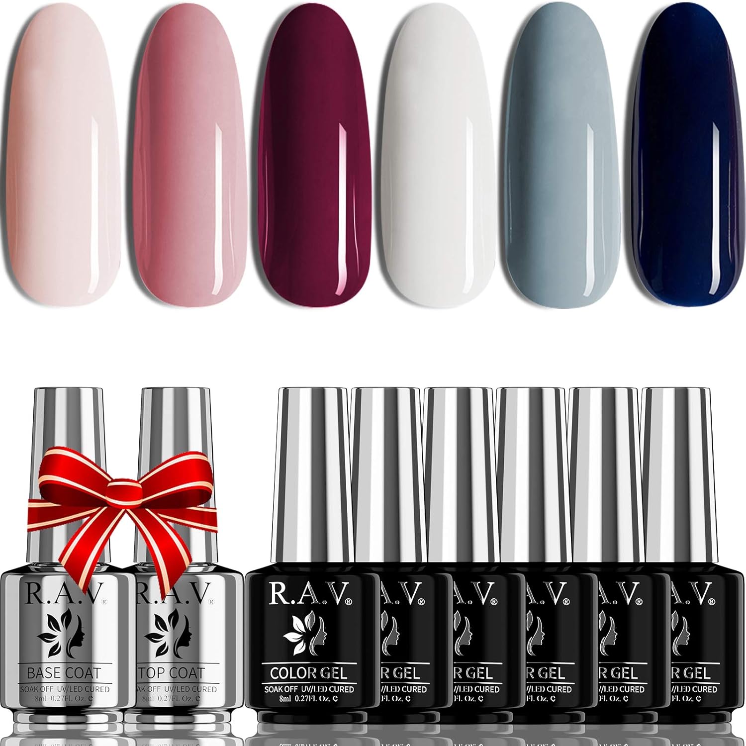 Amazon Com R A V Gel Nail Polish Set Elegant Classic Nude Gray White Pink Dark Blue 6 Colors Gel Polish Set Soak Off Uv Led Nail Art Manicure Kit Top Coat And