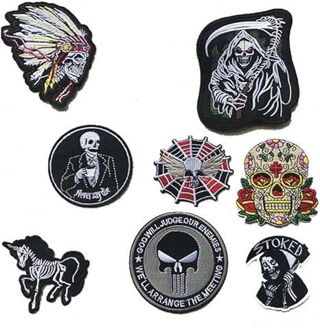 Buding3d 8 Pieces Patches Zum Aufbugeln Gross Punkwind Todesgottschadel Halloween Dekorativer Aufnaher Stickerei Patch Applikation Stoffaufkleber Aufkleber Fur Kleidung Amazon De Kuche Haushalt