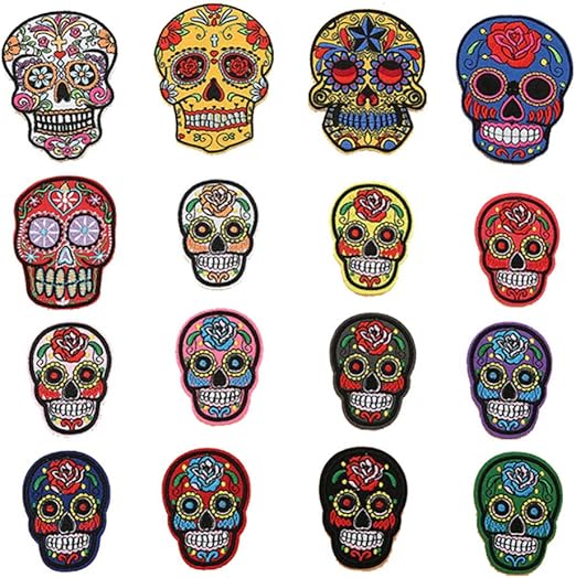 Buding3d Patches Zum Aufbugeln 16 Stuck Farbige Rose Skull Patch Stick Stickerei Dekorativer Aufnaher Stickerei Patch Applikation Stoffaufkleber Aufkleber Fur Kleidung Amazon De Kuche Haushalt