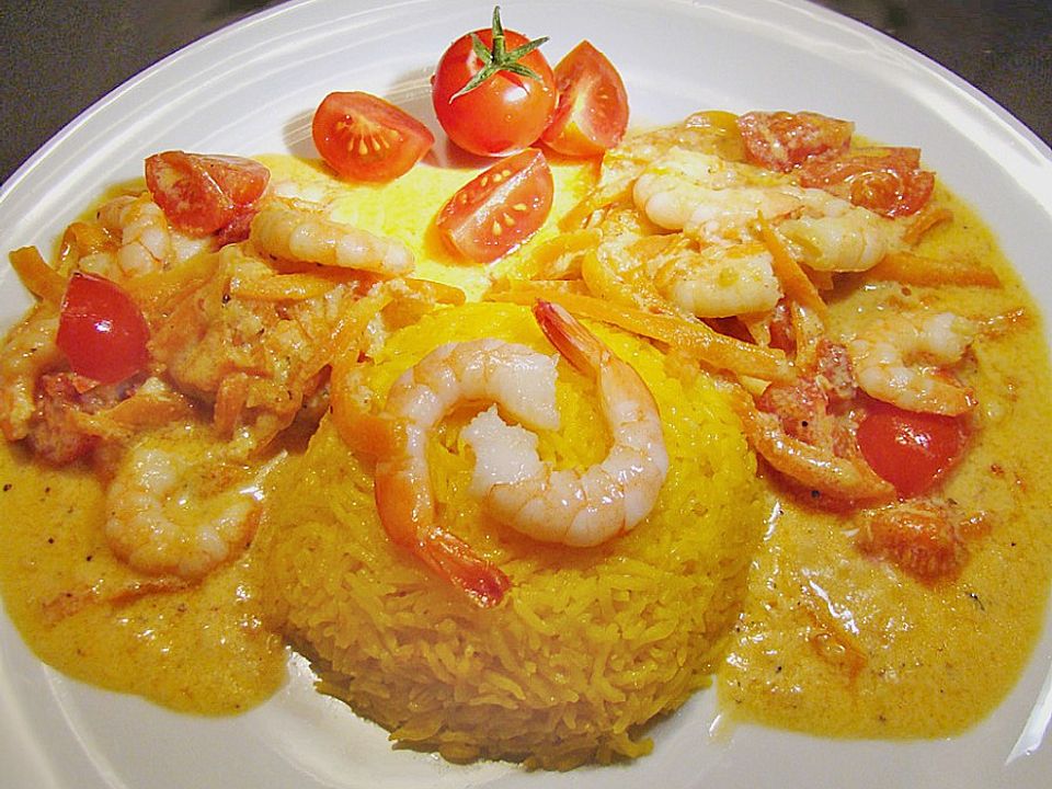 Garnelen Pfanne Mit Curry Reis Curryreis Garnelenpfanne Curry