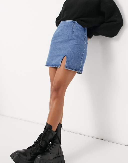 Evesham Nj Design Jeans Minirock Mit Schlitz Vorn In Mittlerer Waschung Evesham Nj