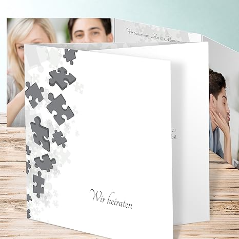 Sendmoments Einladungskarten Holzerne Hochzeit Puzzleteil Karten Doppelklappkarte 145x145 Inkl Weisser Umschlage Grau Amazon De Kuche Haushalt