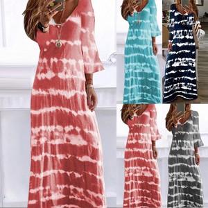 Oksea Damen V Ausschnitt Hemd Kleid Damen 3 4 Arm V Ausschnitt Elegant Lang Blusenkleid Hemdkleid Shirt Kleid Oberteil Kleid Glattes Tuch Maxikleid Mit Amazon De Bekleidung