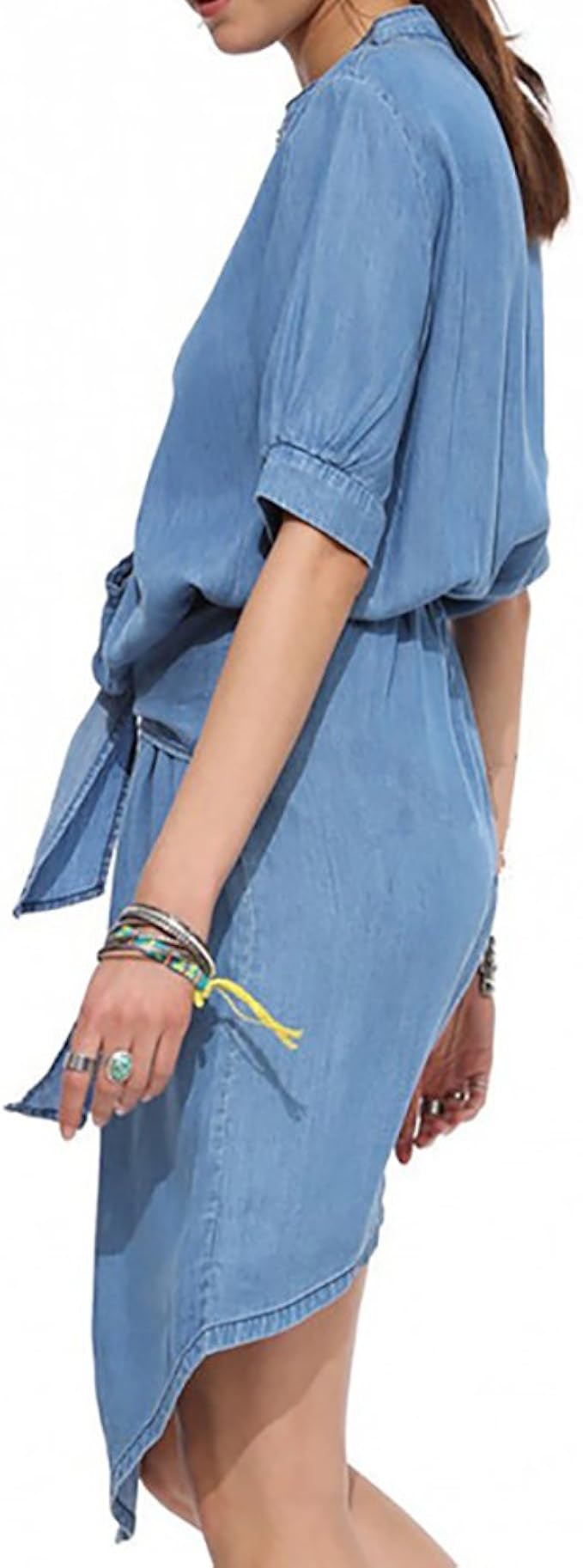 Blaues Hemd Kleider Frauen Turndown Kragen Halbe Armel Kurzes Kleid Milanoo Com