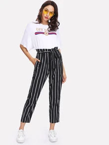 Self Belt Striped Pants Shein Usa