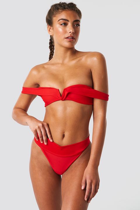 Frill Deep V Bandeau Bikini Rot From Na Kd On 21 Buttons