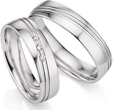 925 Silber Trauringe inkl 3 Zirkonia und Gravur im Paarpreis, in einer hochwertigen Herzetuisbox Die Breite der Ringe betragen 45mm und die Stärke 13mm Die Ringe sind rhodiniert und anlaufgeschützt Alle Ringweiten von 4775 sind lieferbar Bitte beachten Sie das die Ringe für Sie gefertigt und graviert werden, daher von einer Rückgabe ausgeschlossen sind Ein Größenumtausch ist aber. Klassisch Gravur Eheringe aus Sterlingsilber Trauringe Silber Exklusive Eheringe aus hochwertigem 925 Sterling Silber in 6mm Breite Der Damenring verfügt über einen echten Diamanten 0,02 ct im Brillantschliff Das Angebot bezieht sich auf beide Eheringe und beinhaltet eine kostenlose Innengravur sowie ein GratisEtui. JC Trauringe 925er Sterling Silber PaarPreis I Eheringe mit kostenfreier Gravur I Partnerringe 5 mm breit inkl Etui I HerrenRing ohne & DamenRing mit ZirkoniaSteinen I Größe 48 bis 72 I S052S.