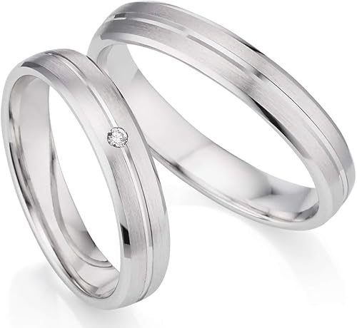 JC Trauringe 925er Sterling Silber PaarPreis I Eheringe mit kostenfreier Gravur I Partnerringe 5 mm breit inkl Etui I HerrenRing ohne & DamenRing mit ZirkoniaSteinen I Größe 48 bis 72 I S052S. Die Gravur für den Ehering kann auch in einem Schwur oder einer anderen Liebesbotschaft bestehen, die Ihr Eurem Partner mit auf den Weg geben wollt Diese Sprüche für Eheringe können eine ganz persönliche Bedeutung haben Welches Versprechen dahinter steckt, das weiß nur das Brautpaar selbst. Beide Trauringe sind aus 925 Silber Der Damenring wird mit zusammen 0,03 ct w/si Brillanten gefasst Puristisches Trauringdesign in feinstem Sterling Silber mit einen exklusiven Diamantenbesatz Breite 5 mm.