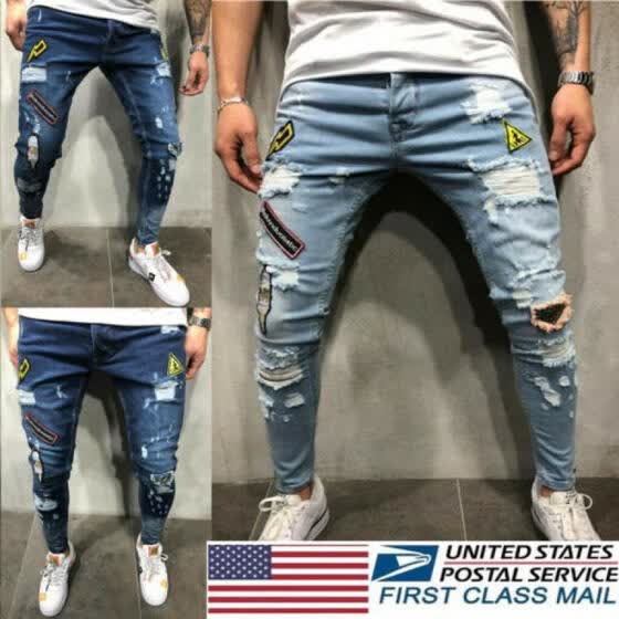 Shop Us Stock Mens Ripped Skinny Jeans Destroyed Frayed Slim Fit Denim Pants Trousers Online From Best Women S Jeans On Jd Com Global Site Joybuy Com