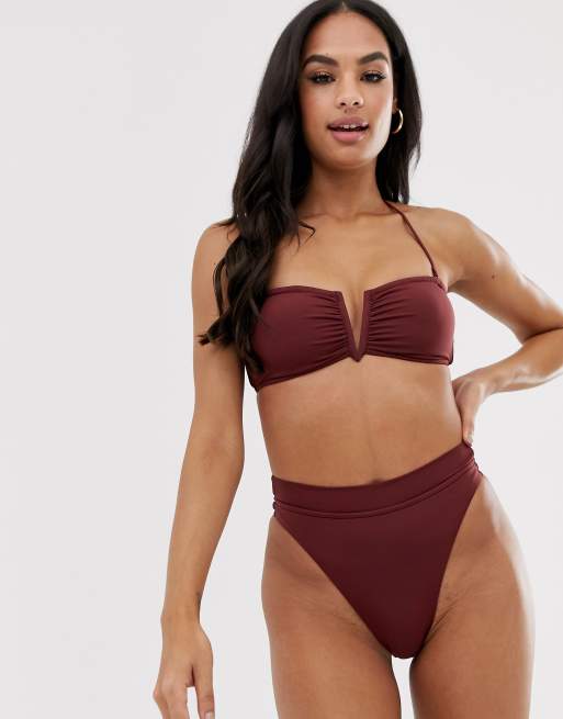 Bikini Bandeau Taille Haute A Pli Petite Boohoo