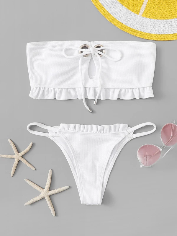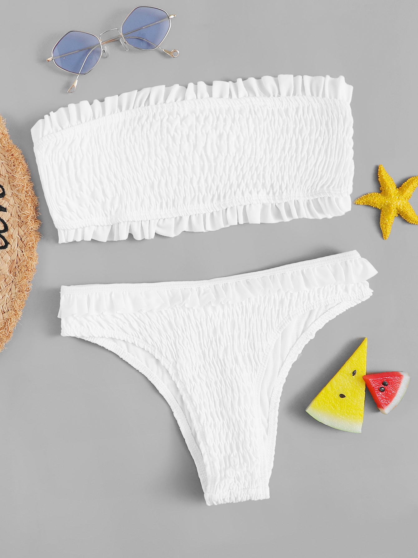 Bikini En Tissu Cotele Avec Plis Shein Bikinis Blancs Bikini Bandeau Bikini
