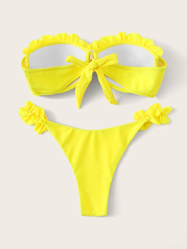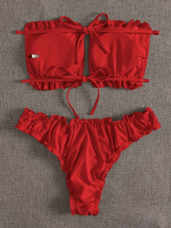 Ensemble De Bikini Bandeau Echancre Avec Nœud Et Des Plis From Shein On 21 Buttons
