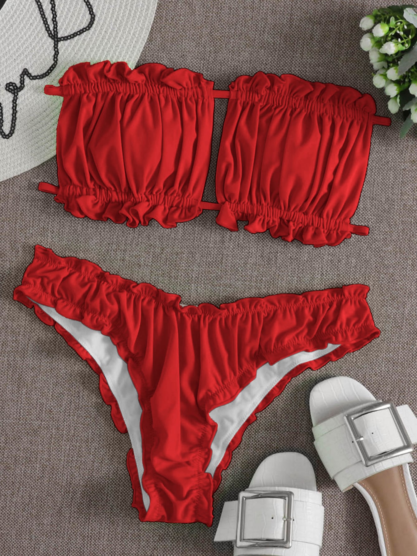 Bikini Bandeau Unicolore Avec Plis Romwe