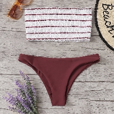 Ensemble De Bikini Bandeau Cotele Avec Des Plis Romwe