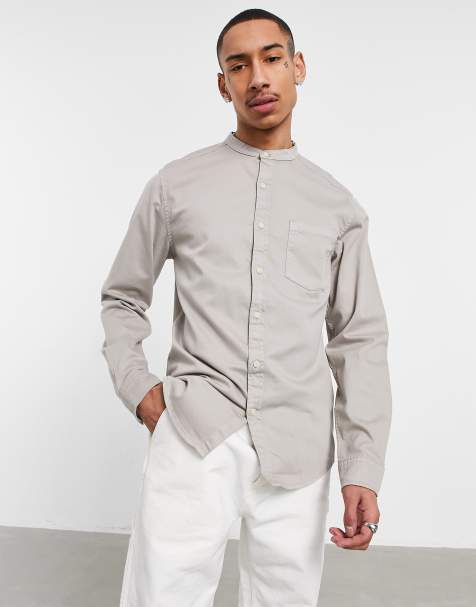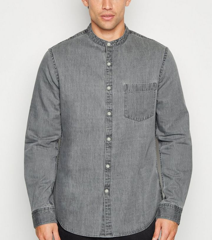Graues Jeanshemd Mit Grandad Kragen New Look