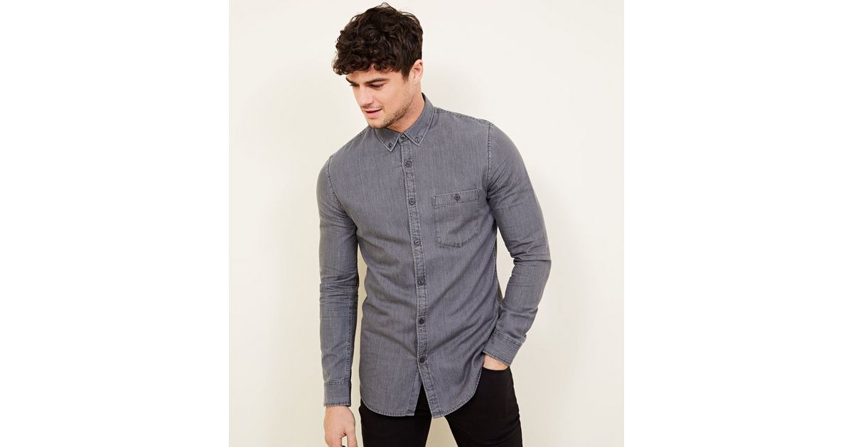 Graues Jeanshemd In Ausgebleichter Waschung New Look