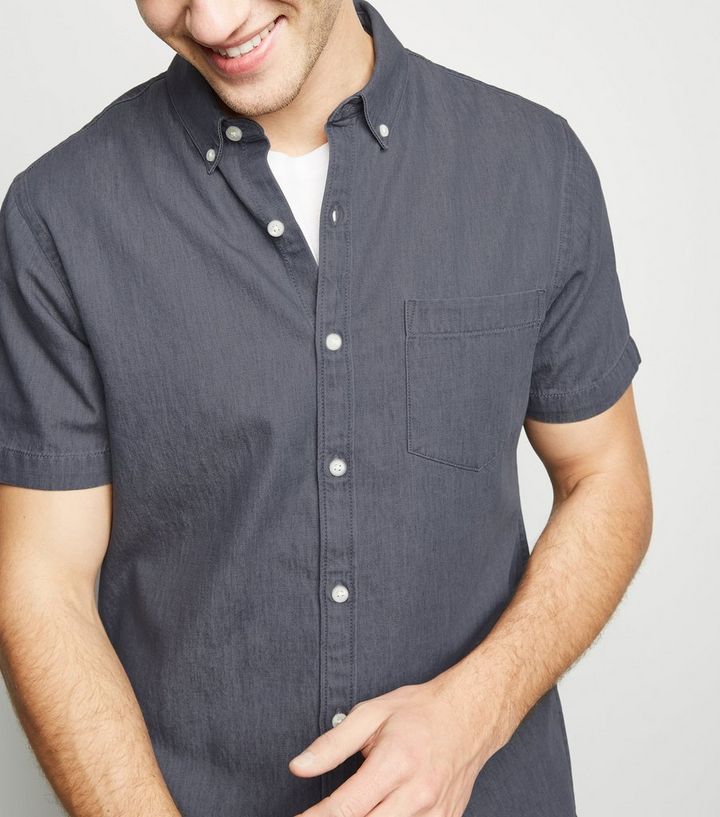 Graues Kurzarmliges Jeanshemd New Look