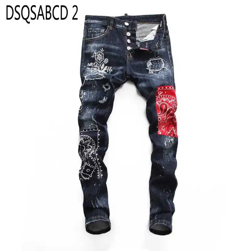 Europaischen Herren Dsq Top Jeans Beruhmte Marke Jeans Luxus Manner Gerade Denim Hose Patchwork Dunne Blau Jeans Bleistift Hosen Fur Manner Jeans Aliexpress