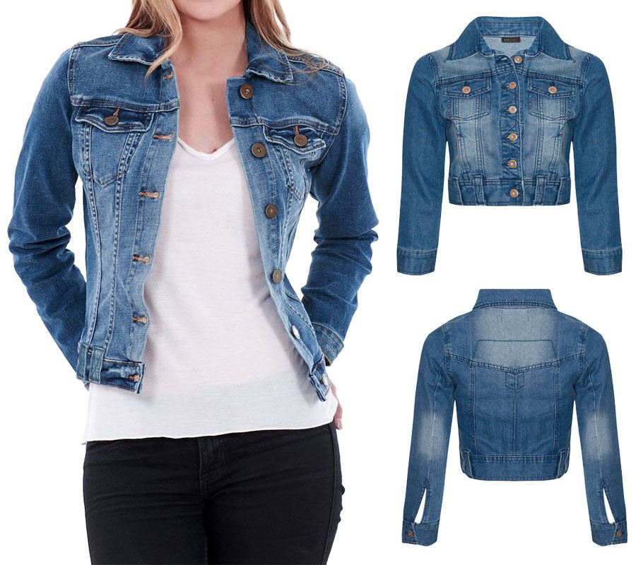 Damen Womens Jacket Mid Wash Length Jean Blue Button Light Sleeve Denim Mid Long Kleidung Accessoires Sticisce Sredisce Si
