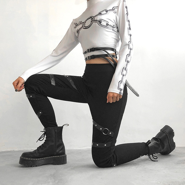 Black Lace Punk Bottoms Cargo Pants Women Ins Dark Gothic Women S Spring Casual Trousers Tight Skinny Leggings With Orange Webbing Wish