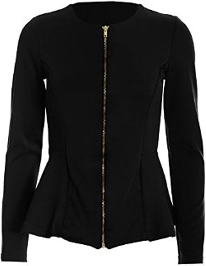 Fashion Mark Damen Blazer Mit Reissverschluss Langarmlig Ruschen Ruschen 4 Farben Grosse 36 42 Schwarz Amazon De Bekleidung