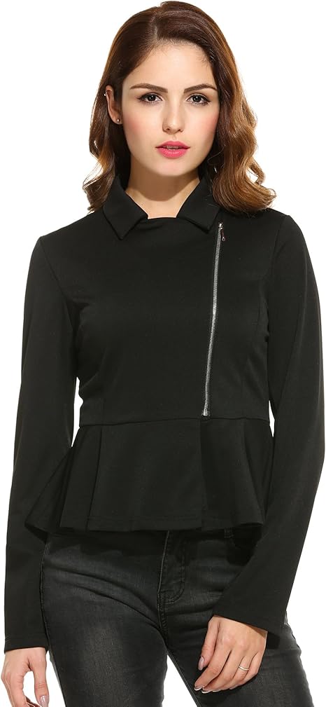 Zeagoo Damen Casual Schosschen Blazer Langarm Reverskragen Jacke Mit Asymmetrischem Reissverschluss Schwarz Amazon De Bekleidung