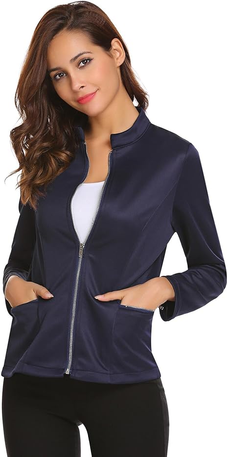 Beyove Damen Jackchen Blazer Reissverschluss Kurzjacke Businessjacke Anzugjacke Jersey Blazer In Unicolor Kurze Pas Business Kleidung Damen Jacken Bomberjacke