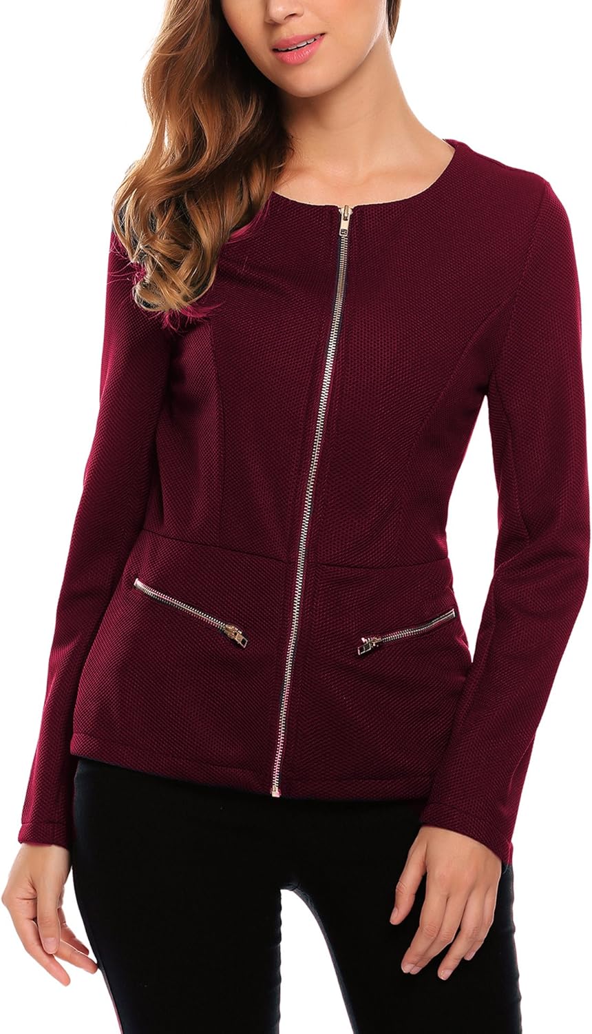 Finejo Damen Blazer Mit Reissverschluss Kurzjacke Tailliert Jackchen Business Jacket Mantel Tops Herbst Winter Weinrot M Amazon De Bekleidung