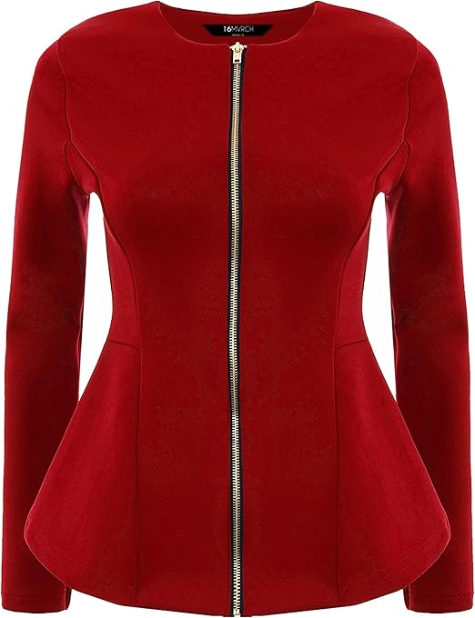16mvrch Damen Blazer Mit Reissverschluss Schosschen Grosse 36 Rot Amazon De Bekleidung