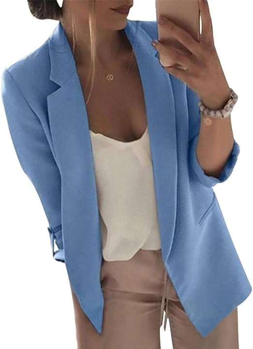 Bolawoo 77 Damen Cardigan Elegant Blazer Blazer Anzugjacke Langarmliger Einfarbig Business Mode Marken Slim Fit Bolero Jacke Anzug Trenchcoat Mit Tasche Color B Blau Size 44 Amazon De Bekleidung