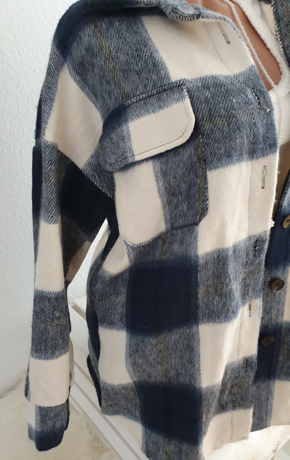Artikeldetails weite Hemdjacke mit aufgesetzten Brusttaschen in HahnentrittmusterGröße & Passform Pia ist 170 cm groß und trägt Gr S weite Passform Rückteil leicht länger als Vorderteil aufgesetzte BrusttaschenArti. Oversize Denim Hemdjacke Ania ist 175 cm groß und trägt die Größe S SKU SJADEAVORIOBLU103, ID 3999 XXS i XS i S. As seen on @chlocraig, @kaylabanderson and @katyluise Model wears a size 8 and is 5"5 Approx.