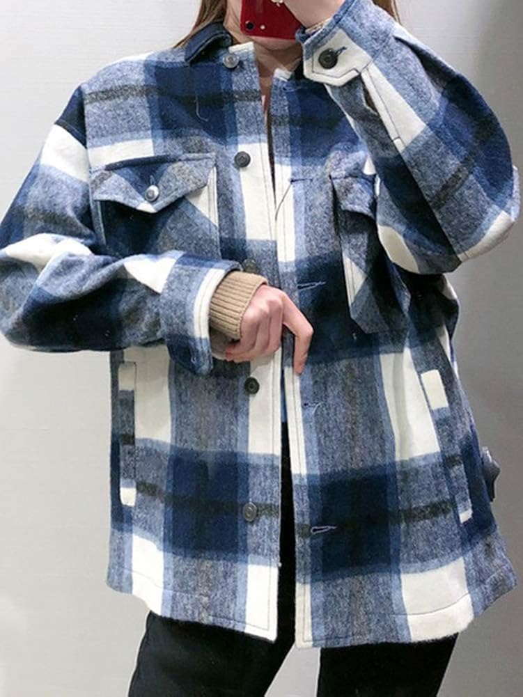 Orandesigne Kariertes Taschen Knopfen Langarm Oversize Bluse Mantel Hemdjacke Holzfallerjacke Damen Mode Amazon De Bekleidung