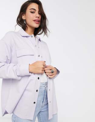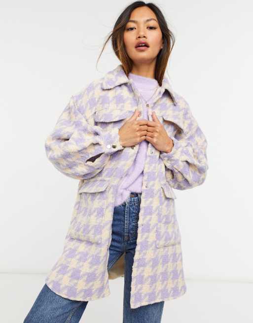 Y A S Oversize Hemdjacke Mit Druckknopfen Vorne Und Hahnentrittmuster In Pastell Lila Asos