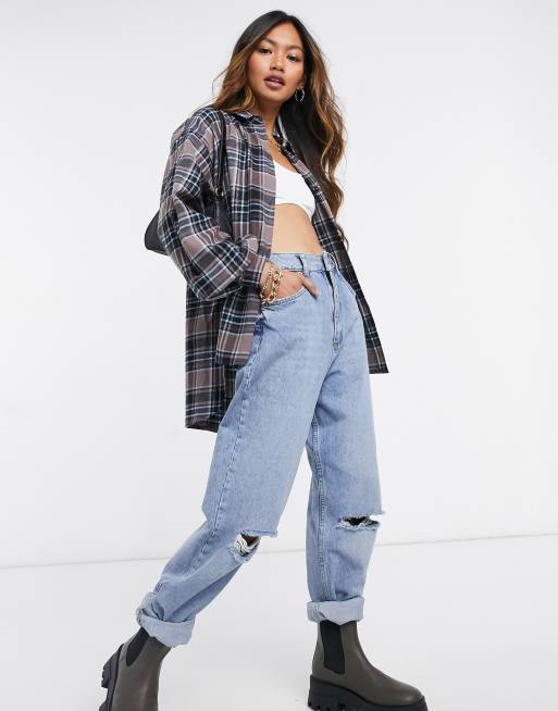 Karierte Oversize Hemdjacke Von Topshop Boutique Topshop