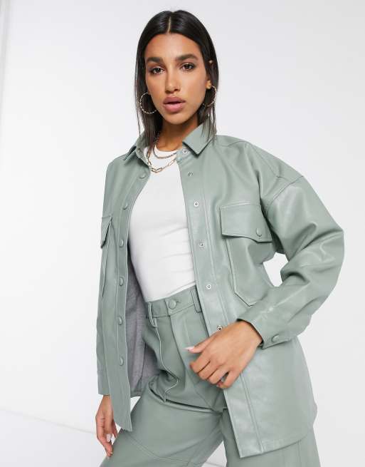 Neon Rose Oversize Hemdjacke Aus Kunstleder Kombiteil Evesham Nj