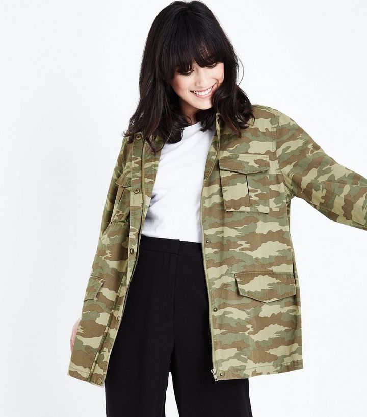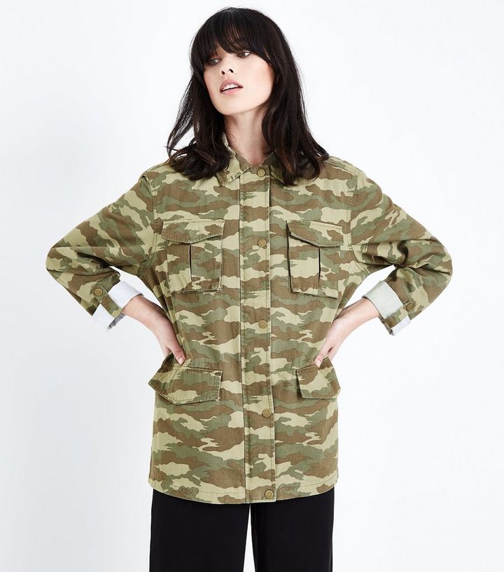 Grune Oversize Hemdjacke Mit Camouflage Muster New Look