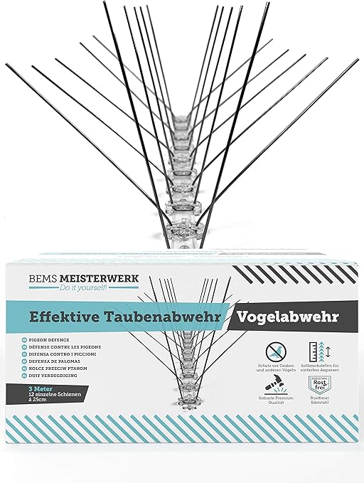 Dach Und Fenster Bems Meisterwerk Effektive Taubenabwehr Und Vogelabwehr Mit Vogelschutz Spikes Aus Edelstahl Fur Balkon 3m Taubenspikes Mit Sollbruchstellen Fur Einfache Montage Garten Gartenarbeit