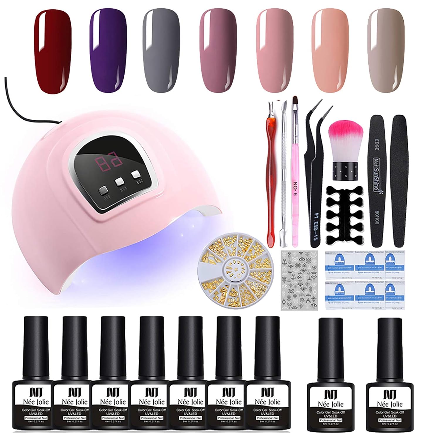 Nee Jolie Gel Nail Polish Starter Kit With 54w Uv Nail Lamp 7 Colors Gel Polish No Wipe Top Coat And Base Gel 10pcs Nail Art Manicure Tools Set Beauty Amazon Com