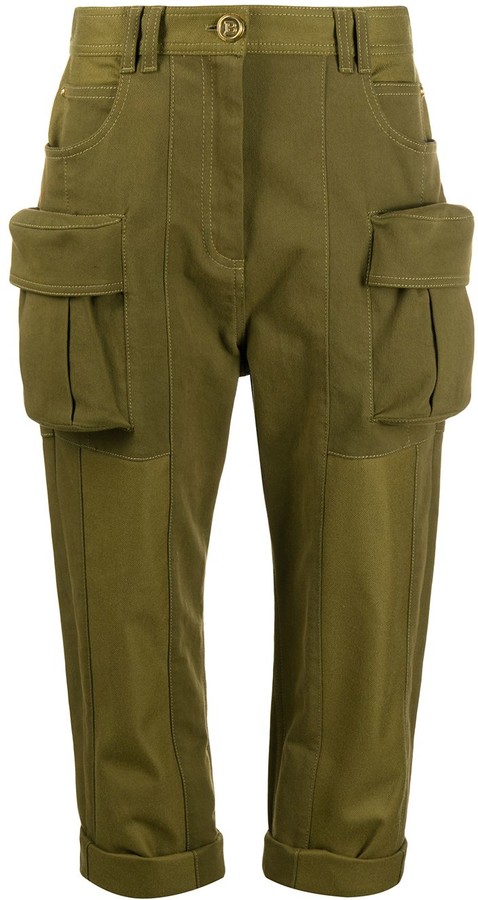 Khaki Green Cargo Pants In Stretch Cotton Twill Zip Fly With Button Side Pockets And Leg And Back Pockets Wi Cargo Trousers Khakis Outfit Green Cargo Pants
