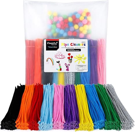 Magicfly 1000 Stuck Pfeifenreiniger Diy Pfeifenputzer Set Mit 100 Stuck Pompons Und 50 Stuck Kulleraugen Zum Basteln Amazon De Kuche Haushalt