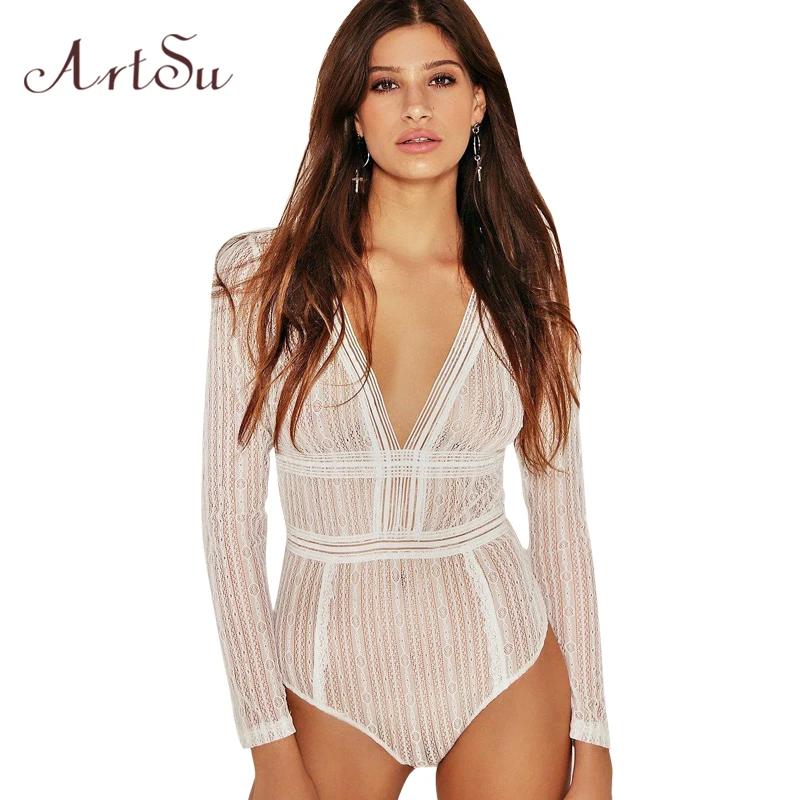 Artsu Sexy Weiss Spitze Body Fur Frauen Langarm Hohl Korper 17 Sommer Strampler Tiefe V Overall Backless Overalls Asju White Lace Bodysuit Bodysuit For Womendeep V Jumpsuit Aliexpress