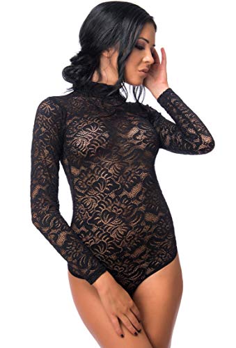 Evoni Spitzen Body Bodysuit Mit Halbkragen Fur Frauen Transperenter Langarm Body In Verschiedenen Farben Grossen Mit Verschluss Reizvolle Damen Wasche Mit Optimaler Passform Amazon De Bekleidung