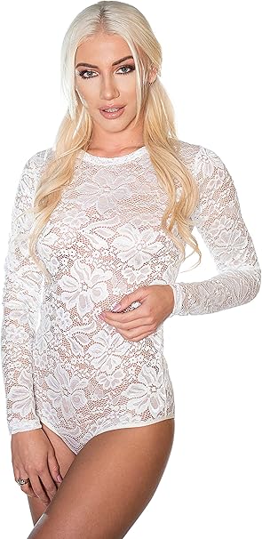 Evoni String Body Aus Spitze Thong Bodysuit Mit Rundhals Fur Frauen Damen Langarm Body Haken Verschluss Reizvolle Damen Wasche Mit Optimaler Passform Top Overall Amazon De Bekleidung