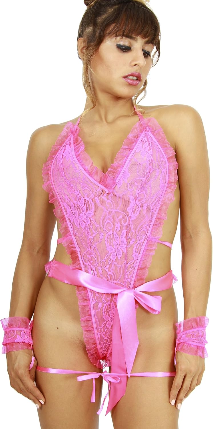 Ho Ersoka String Body Damen Spitze Teddy Frauen Ruckenfrei Mit Satin Schleife Und Gelenkbandern
