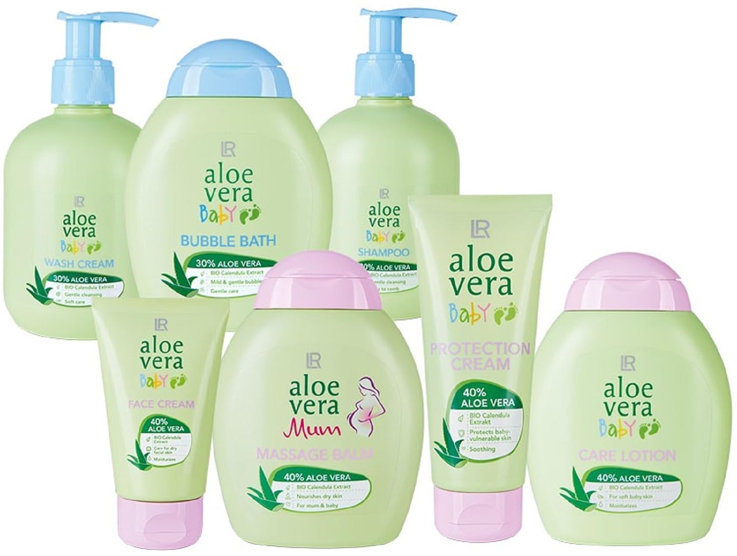 LR Aloe Vera BabypflegeProdukte sind ideal für die besonders empfindliche Haut Deines Babys Die Babypflegeprodukte sind mit 30% wertvoller Aloe Vera und BioCalendulaExtrakt angereichert Das bedeutet für die BabyHaut absolute natürliche Reinigung und Pflege mit Naturkosmetik, aber auch Pflege der zarten Babyhaut beim Shampoonieren, Waschen und Baden.