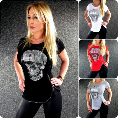 Glitzer Damen Totenkopf Shirt S M L Xl Schwarz Rot Weiss Grau Zazou T Shirt M1919 Ebay