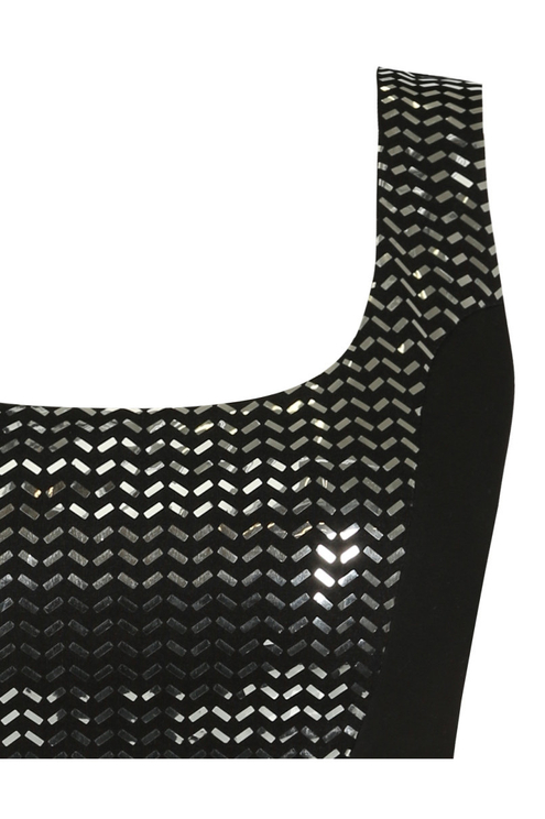 Glitzer Top Mit Mesh Passe Schwarz Gold